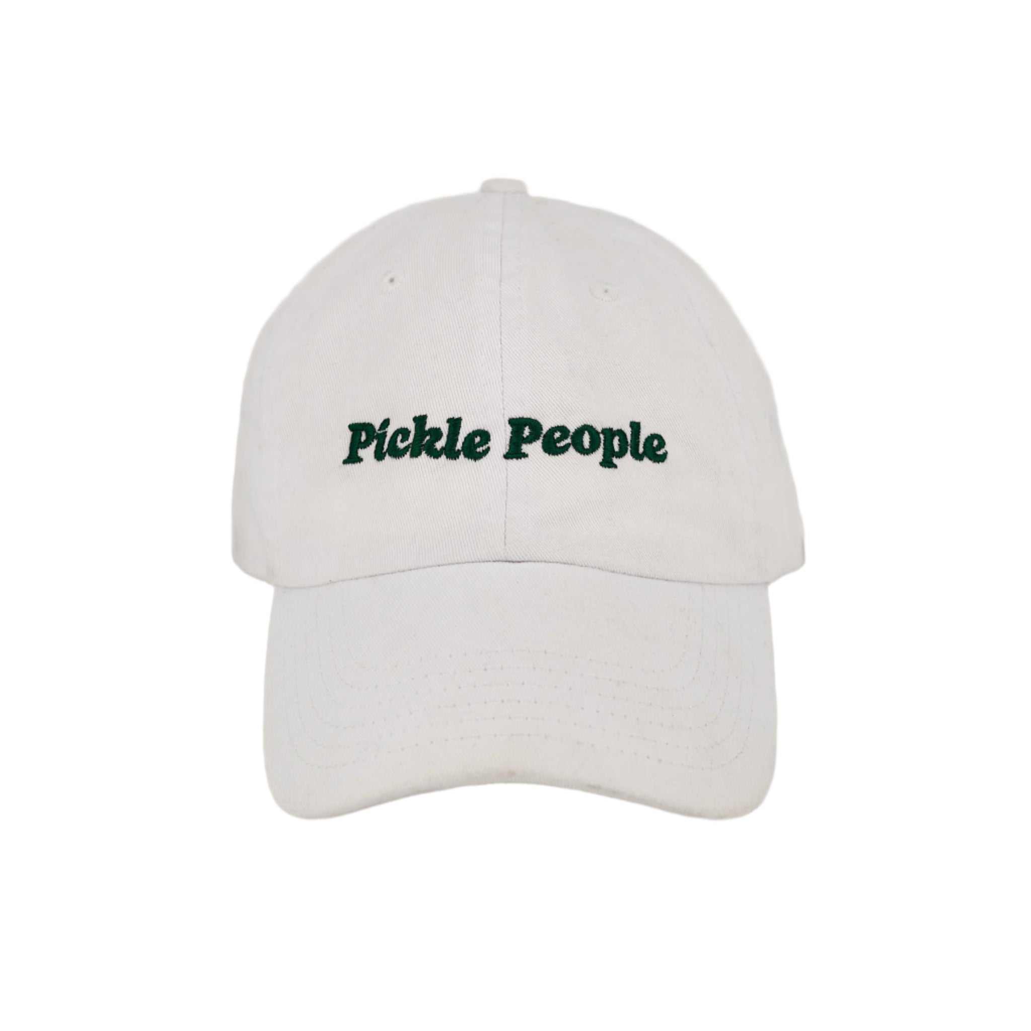 Crafted and embroidered with precision and care, the Pickle People white hat features classic writing that exudes a sense of nostalgia and sophistication. Whether you're hitting the streets, lounging, or playing pickleball, our hats are designed to elevate any look with their classic allure and exceptional comfort.